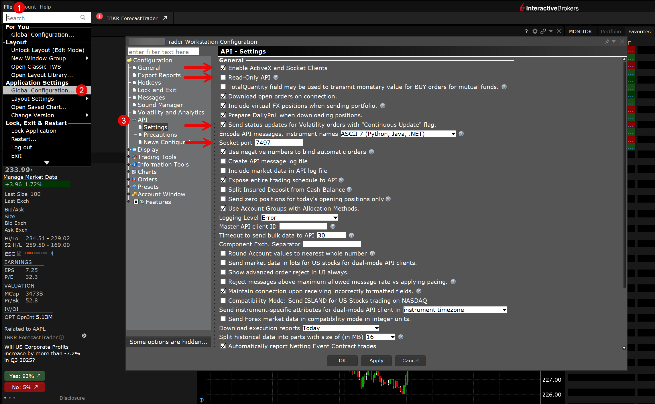 - Change Socket port to 7497 (live) or 7496 (paper trading)