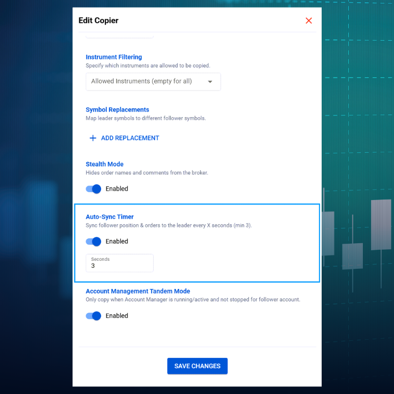 Auto-Sync represents a paradigm shift. Instead of trying to predict and configure every edge case, CrossTrade continuously monitors and realigns your accounts every 3 seconds. It acts as an insurance policy that fixes discrepancies automatically based on your copier configuration.