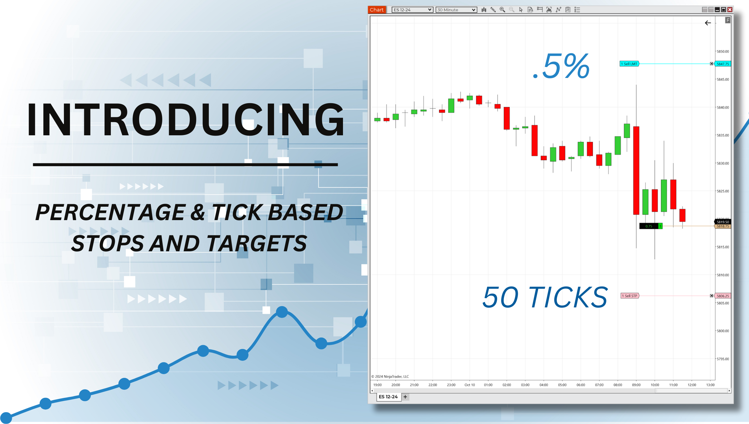 Precision is key in trading, and with our new tick- and percentage-based stops and targets, you can manage risk and rewards with even greater accuracy. These tools give you the flexibility to define your trading strategy with exact parameters, helping you stay in control regardless of market conditions.