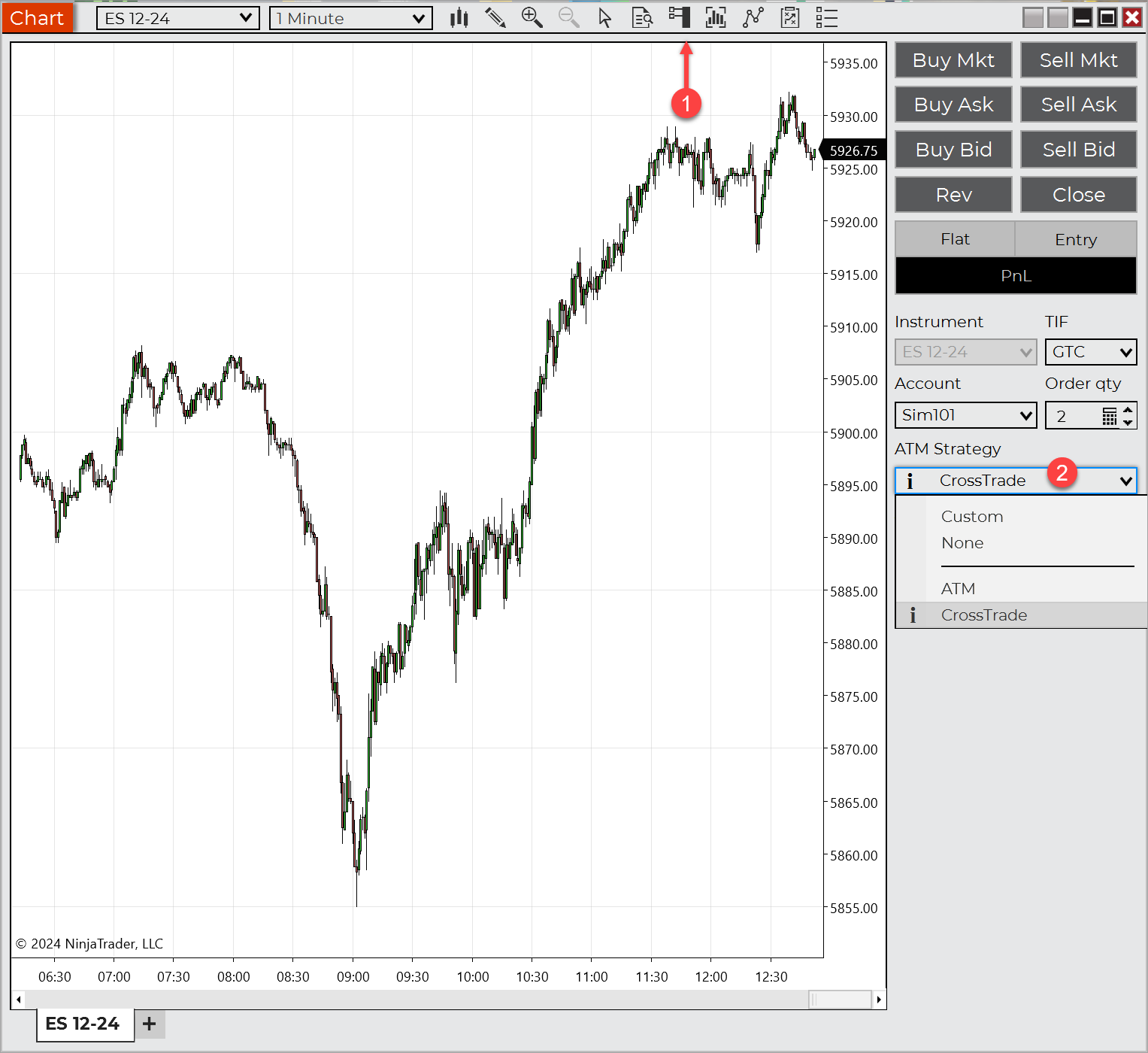 - Open your ChartTrader or SuperDOM