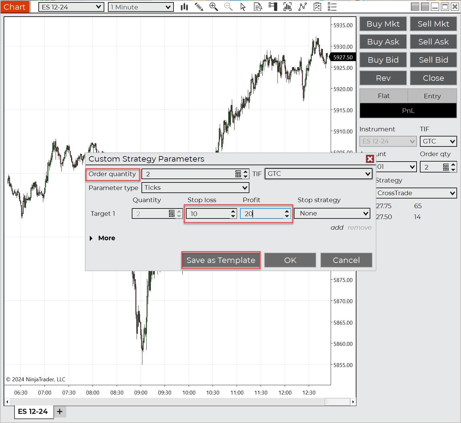 Here’s how to set up a basic 1 Stop/1 Target ATM Strategy and save it as a template: